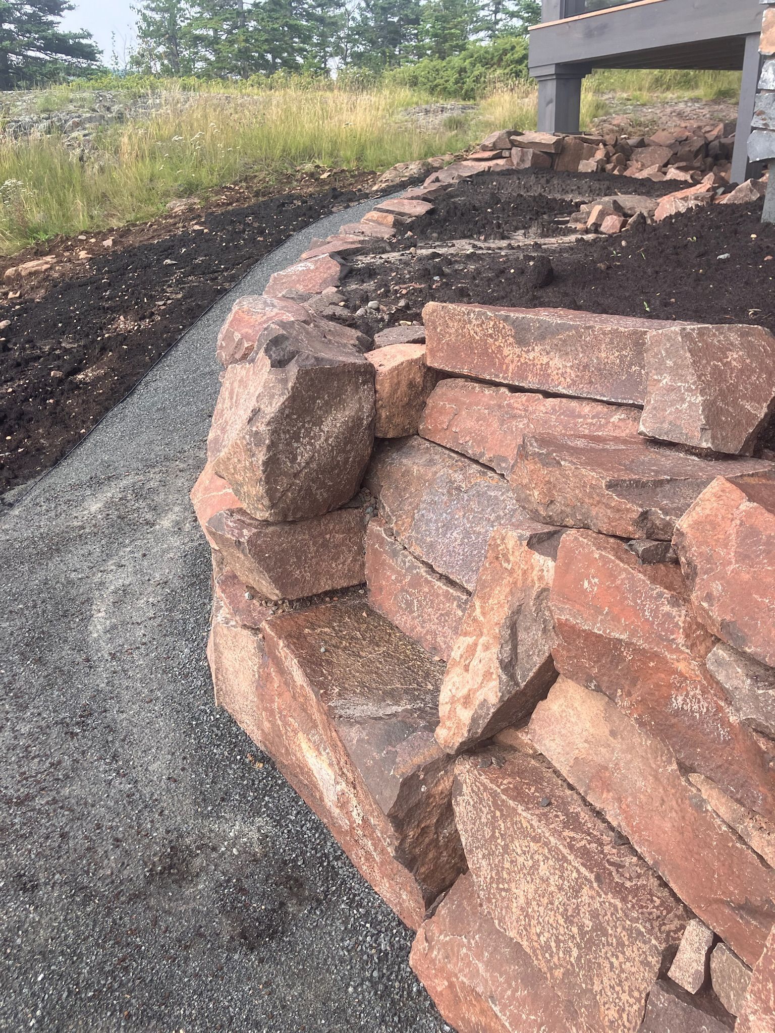 - Natural stone seating walls